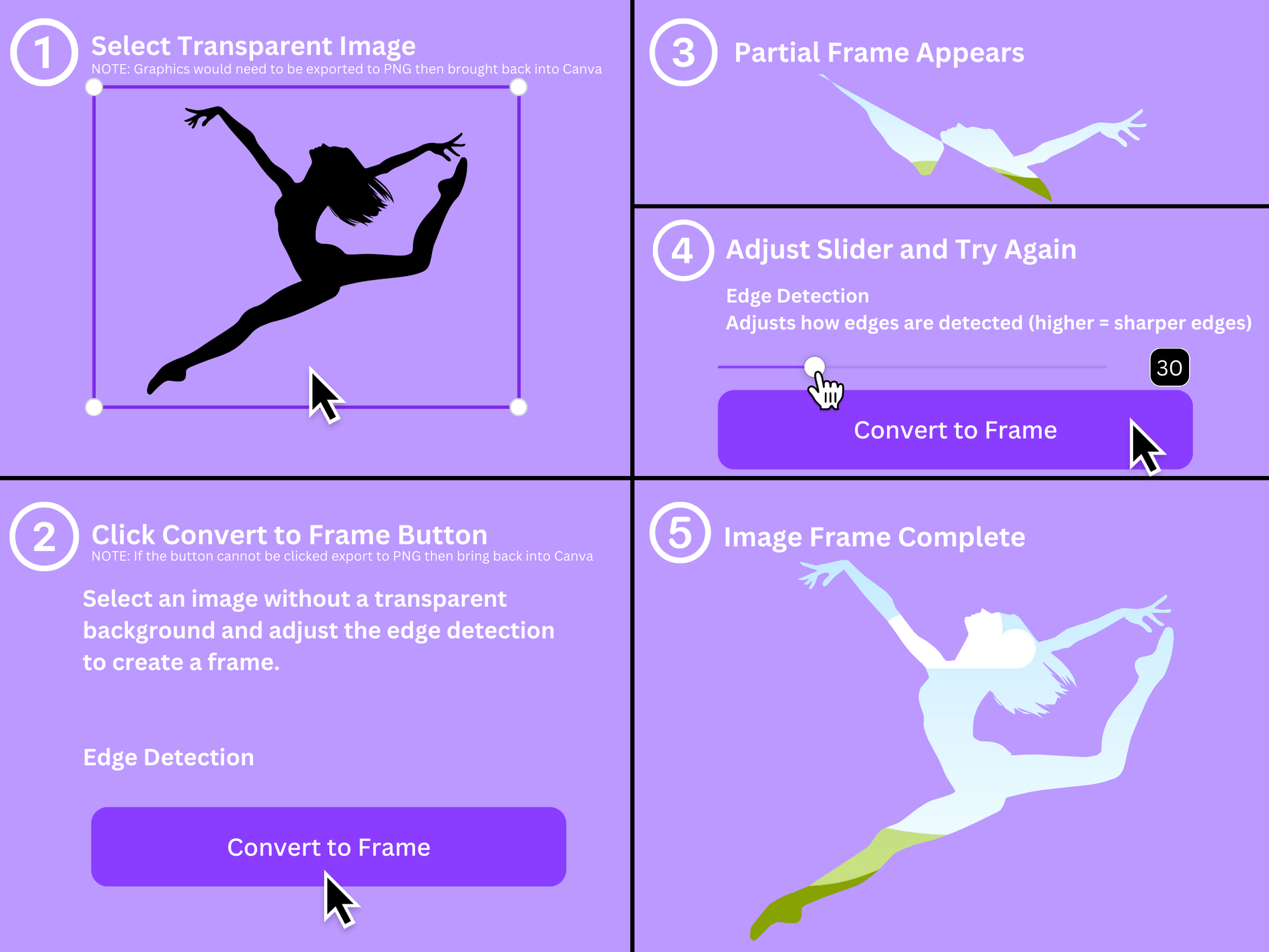 Transform the way you create in Canva with our innovative Canva Frame Creator app! This powerful tool converts images into custom Canva frames instantly, eliminating the tedious process of external editing and re-uploading. With just one click, create a frame from a transparent image or fine-tune edge detection for ultimate precision.